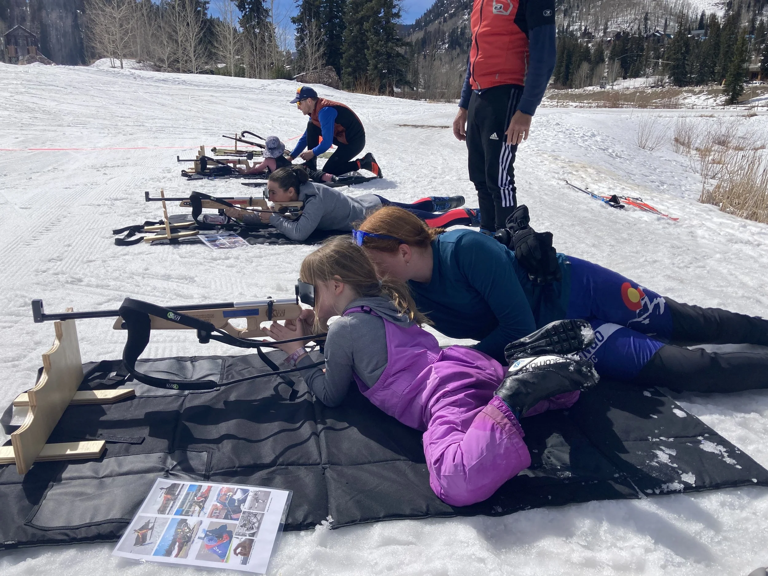Durango Nordic is excited to launch biathlon programming, made possible by generous donations of equipment, coaching expertise, and an LPEA grant. Biathlon combines cross-country skiing with rifle shooting, requiring both physical and mental control. During non-snow seasons, biathlon events combine running or biking with rifle shooting. In all biathlon events, athletes ski, run or bike the race course and stop mid-race at a shooting range, pick up a rifle and take five shots at targets. Missed shots result in penalty laps. If you have never shot a rifle before, this is a perfect opportunity to give it a try in a safe, fun and supportive environment. Durango Nordic uses laser rifles and electronic targets.
